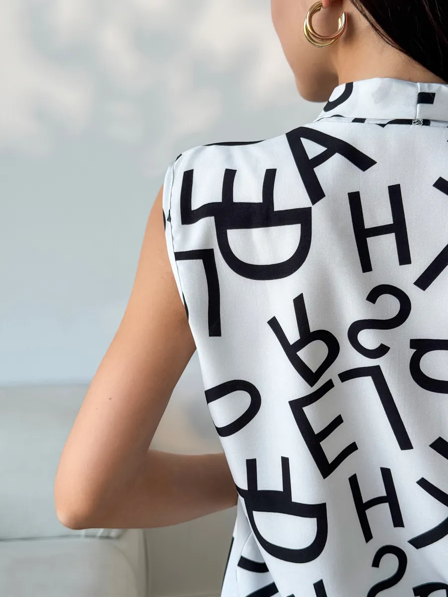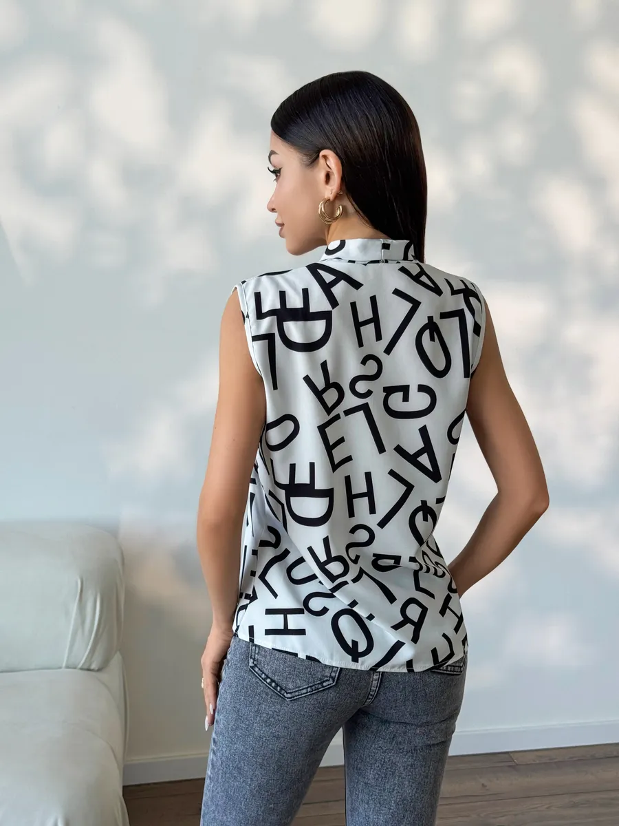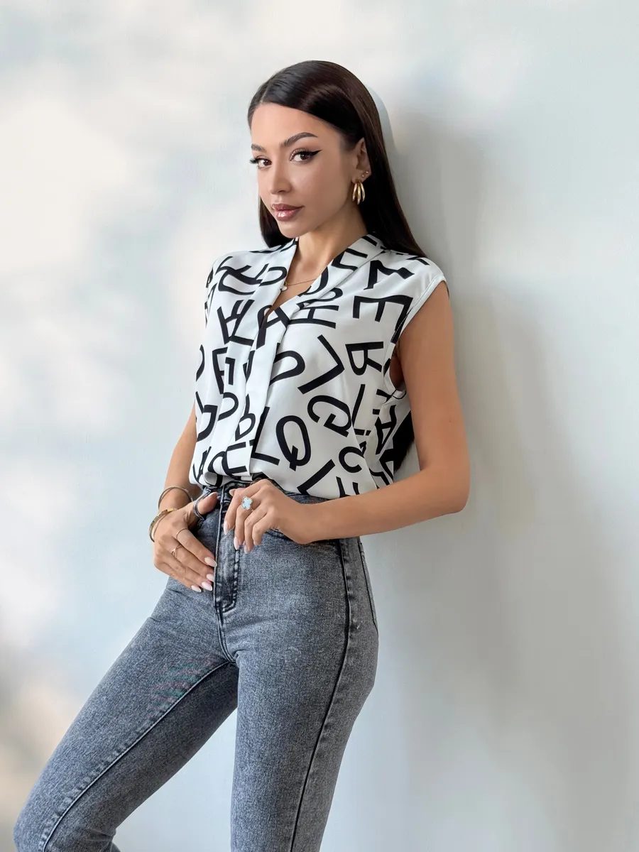 Элегантная женская вещь без рукава станет идеальным вариантом в офис и на каждый день. Модель имеет V-образный вырез и украшена принтом. Светлая блуза легкая, поэтому подойдет на лето и весну. Ее можно носить как школьную, она подойдет на 1 сентября или последний звонок. Блузка прямого кроя нарядная, поэтому ее можно носить как вечернюю на встречу с друзьями или на прогулку. Стильная модель подойдет девушкам и женщинам старшего возраста. Ее можно носить как офисную или повседневную. Блузка топ подойдет как летняя и весенняя. С ней можно создавать многослойные образы и оставаться в тренде. Изысканный вырез подчеркнет зону декольте, а свободный крой поможет скрыть возможные недостатки фигуры.