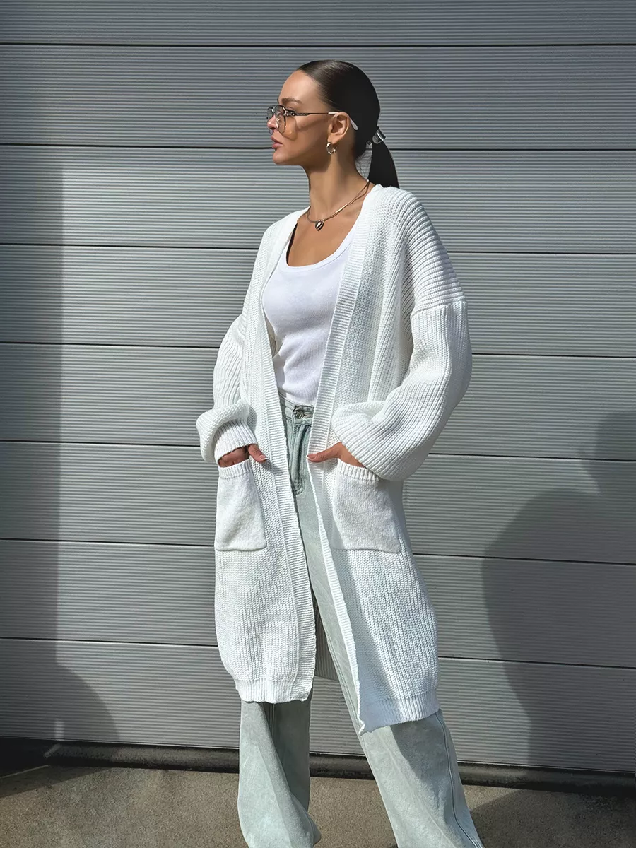 Кардиган женский оверсайз - неотъемлемая часть гардероба. Длинная нарядная кофта подчеркнет талию и создаст женственный образ. Теплый кардиган подойдет на лето во время вечерних прогулок и зимой, весной. Корейский кардиган с карманами необычный и добавит романтического настроения. Он уютный, объемный, мягкий и приятный к телу. В сочетании с разной одеждой можно создать стильный образ в стиле пинтерест. Модель трикотаж в корейском стиле подойдет на маленький рост для низких девушек как трендовый кардиган макси. Вязаный кардиган с принтом можно использовать как кимоно на запах, а это значит, что он отлично будет смотреться на любом типе фигуры, даже если вы ищете модный кардиган больших размеров size plus или для беременных и будущих мам. Он имеет обширный размерный ряд, в том числе большие размеры для полных плюс сайз девушек. Модель макси без застежки имеет удлиненный крой и широкие рукава. Трикотажный кардиган миди подойдет на весенний и зимний периоды для создания молодежного образа в стиле кэжуал. В сочетании с другими вещами получится образ для каждой девушки. Вечерний кардиган винтаж с длинными рукавами подойдет под любой аутфит. Милая модель крупной вязки с рукавами фонариками станет частью женского гардероба на сезон зима-весна 2025.