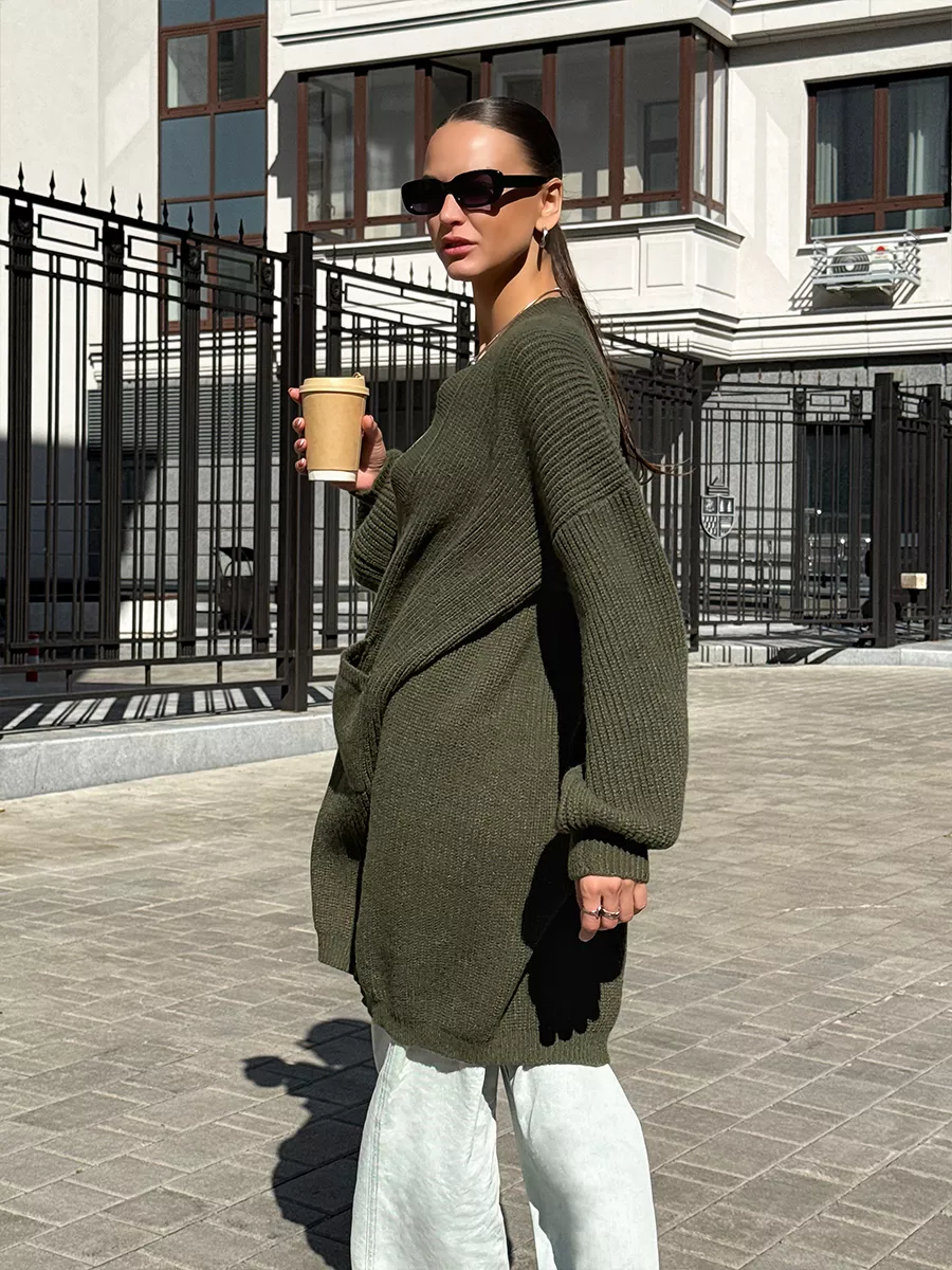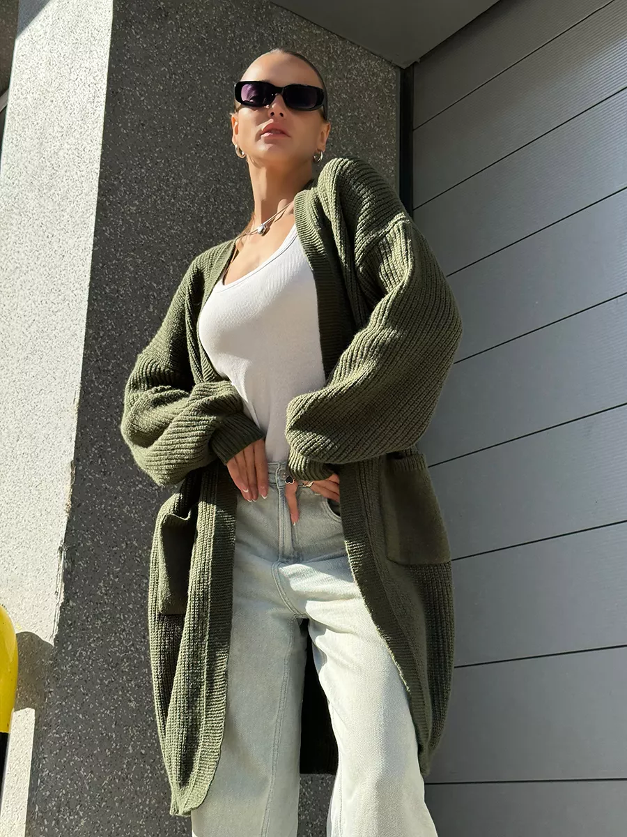 Кардиган женский оверсайз - неотъемлемая часть гардероба. Длинная нарядная кофта подчеркнет талию и создаст женственный образ. Теплый кардиган подойдет на лето во время вечерних прогулок и зимой, весной. Корейский кардиган с карманами необычный и добавит романтического настроения. Он уютный, объемный, мягкий и приятный к телу. В сочетании с разной одеждой можно создать стильный образ в стиле пинтерест. Модель трикотаж в корейском стиле подойдет на маленький рост для низких девушек как трендовый кардиган макси. Вязаный кардиган с принтом можно использовать как кимоно на запах, а это значит, что он отлично будет смотреться на любом типе фигуры, даже если вы ищете модный кардиган больших размеров size plus или для беременных и будущих мам. Он имеет обширный размерный ряд, в том числе большие размеры для полных плюс сайз девушек. Модель макси без застежки имеет удлиненный крой и широкие рукава. Трикотажный кардиган миди подойдет на весенний и зимний периоды для создания молодежного образа в стиле кэжуал. В сочетании с другими вещами получится образ для каждой девушки. Вечерний кардиган винтаж с длинными рукавами подойдет под любой аутфит. Милая модель крупной вязки с рукавами фонариками станет частью женского гардероба на сезон зима-весна 2025.