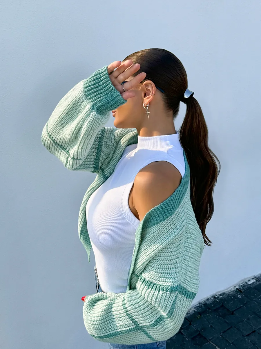 Эта женская модель является идеальным сочетанием моды и комфорта! Короткий кардиган добавит изюминку в ваш образ. Теплая кофта крупной вязки прекрасно согреет в прохладную погоду. Двухцветная вещь подойдет для зимнего и осеннего сезонов, идеально подходя для подростков в школу. Она изготовлена из трикотажного вязаного материала. Кардиган кроп — это трендовый демисезонный вариант для тех, кто ценит комфорт и свободу движения. Он имеет принт из двух цветов, что позволяет создавать очень милые образы в сочетании с другими вещами для каждой девушки. Изделие в корейском стиле y2k (у2к) обладает укороченным кроем и отлично подходит как школьный для девочек-подростков. Кардиган без застежки идеален для формирования элегантных и женственных образов на весну-осень. Он уютный, объемный, мягкий и приятный на ощупь. В сочетании с различными аксессуарами можно создать стильный и романтичный образ для женщин в стиле Pinterest. Вариант оверсайз с широкими рукавами — отличный выбор для прохладных весенних вечеров.