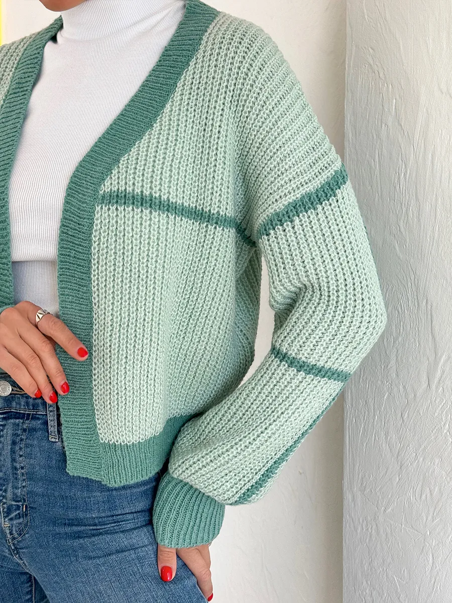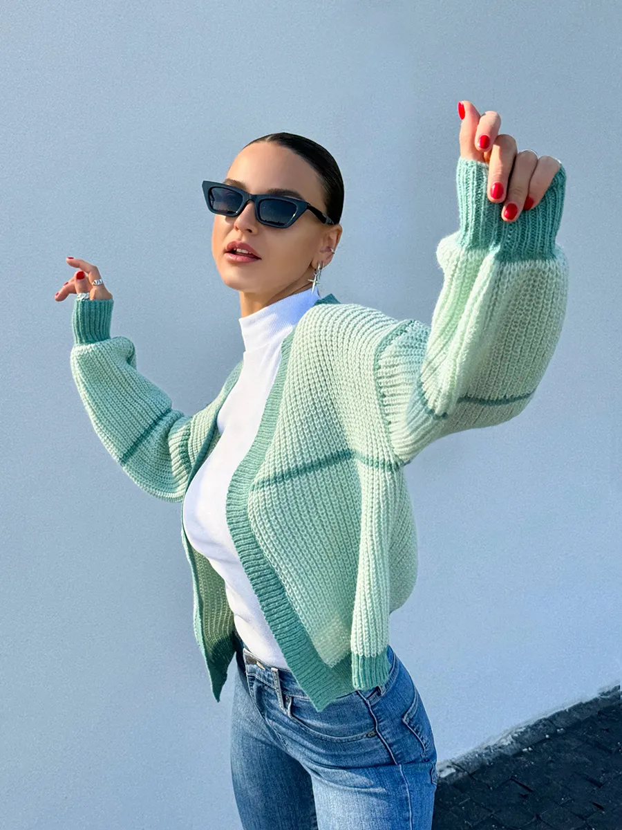Эта женская модель является идеальным сочетанием моды и комфорта! Короткий кардиган добавит изюминку в ваш образ. Теплая кофта крупной вязки прекрасно согреет в прохладную погоду. Двухцветная вещь подойдет для зимнего и осеннего сезонов, идеально подходя для подростков в школу. Она изготовлена из трикотажного вязаного материала. Кардиган кроп — это трендовый демисезонный вариант для тех, кто ценит комфорт и свободу движения. Он имеет принт из двух цветов, что позволяет создавать очень милые образы в сочетании с другими вещами для каждой девушки. Изделие в корейском стиле y2k (у2к) обладает укороченным кроем и отлично подходит как школьный для девочек-подростков. Кардиган без застежки идеален для формирования элегантных и женственных образов на весну-осень. Он уютный, объемный, мягкий и приятный на ощупь. В сочетании с различными аксессуарами можно создать стильный и романтичный образ для женщин в стиле Pinterest. Вариант оверсайз с широкими рукавами — отличный выбор для прохладных весенних вечеров.
