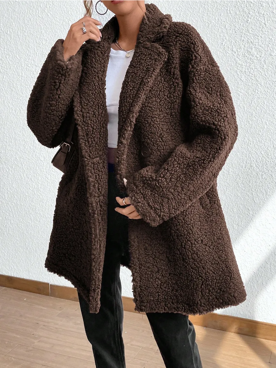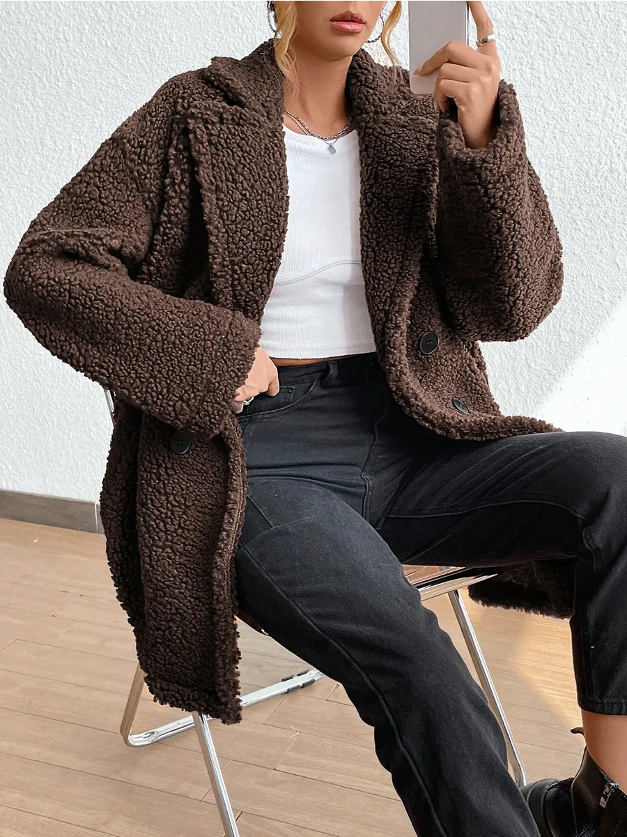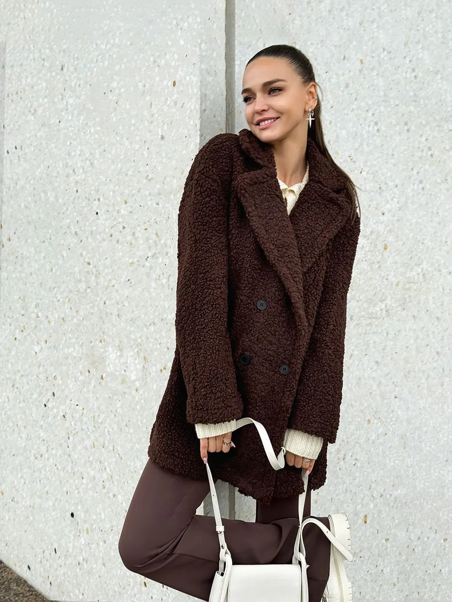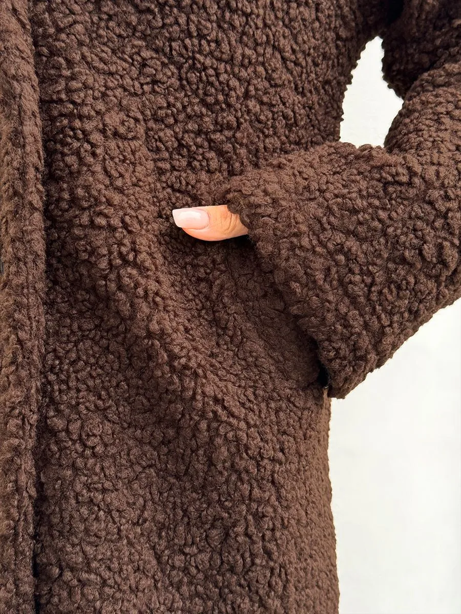 Полупальто женское тедди - идеальный вариант на теплую весну и прохладное лето. Легкое пальто имеет отложной воротник и длину выше колена. Двубортное застегивание на пуговицы добавит элегантности и практичности. Модель трапеция подойдет для повседневной носки и делового стиля. Весенняя шубка тедди подойдет подросткам и молодым девушкам. Ее а силуэт, стильный и милый дизайн обязательно оценят женщины, которые любят создавать образы как из пинтерест. Пушистое полупальто чебурашка мягкое и уютное - тренд 2025 года. Модель имеет свободный оверсайз крой, который не сковывает движений. Идеально подойдет беременным и скроет животик. Плюшевая куртка выполнена в шоколадном оттенке. Легкая шубка барашек подходит под модный стиль y2k (у2к). Меховое полупальто пиджак подойдет на теплое время демисезона, с ним можно создавать многослойные образы и сочетать с большим количеством нарядов засчет его универсального цвета. Трендовая модель подойдет для невысоких девушек.