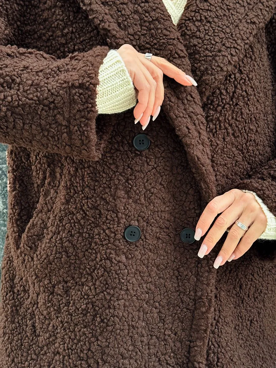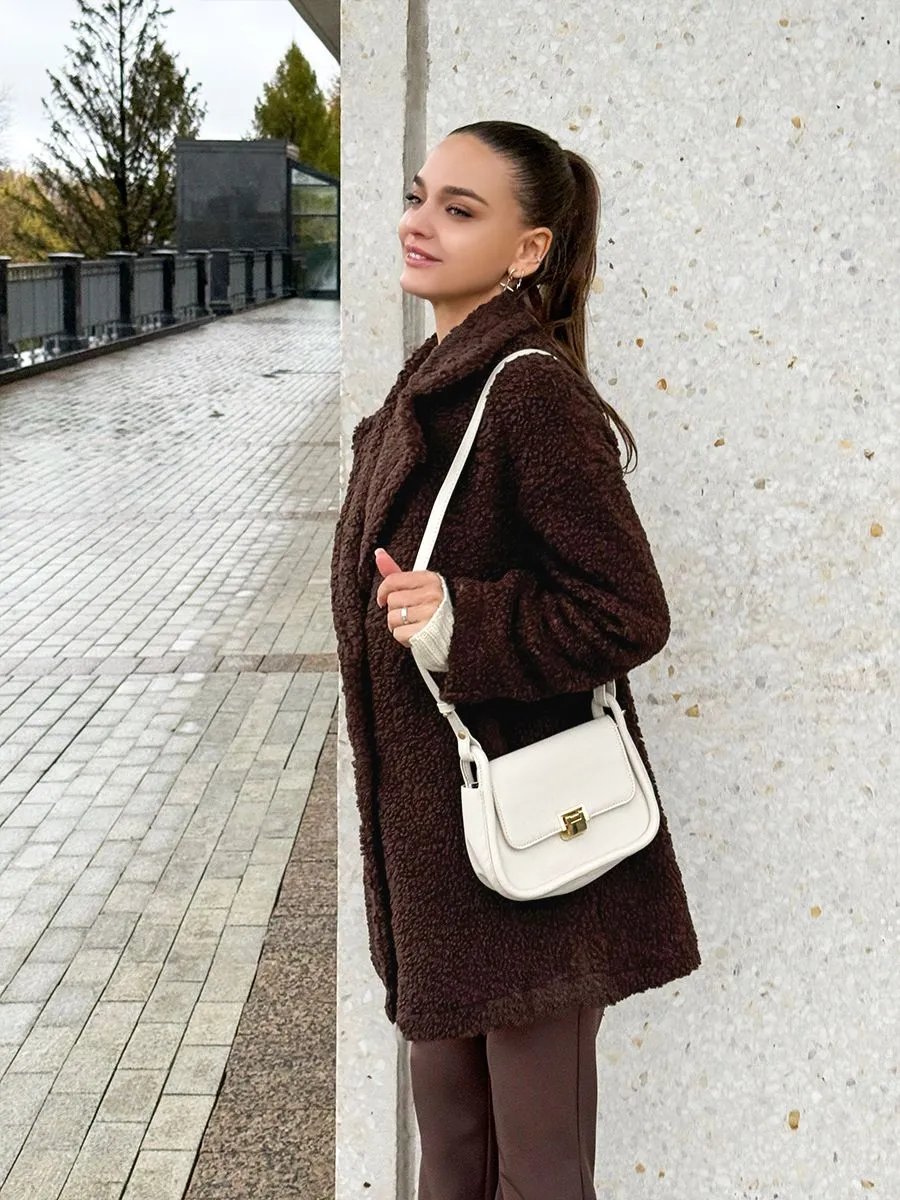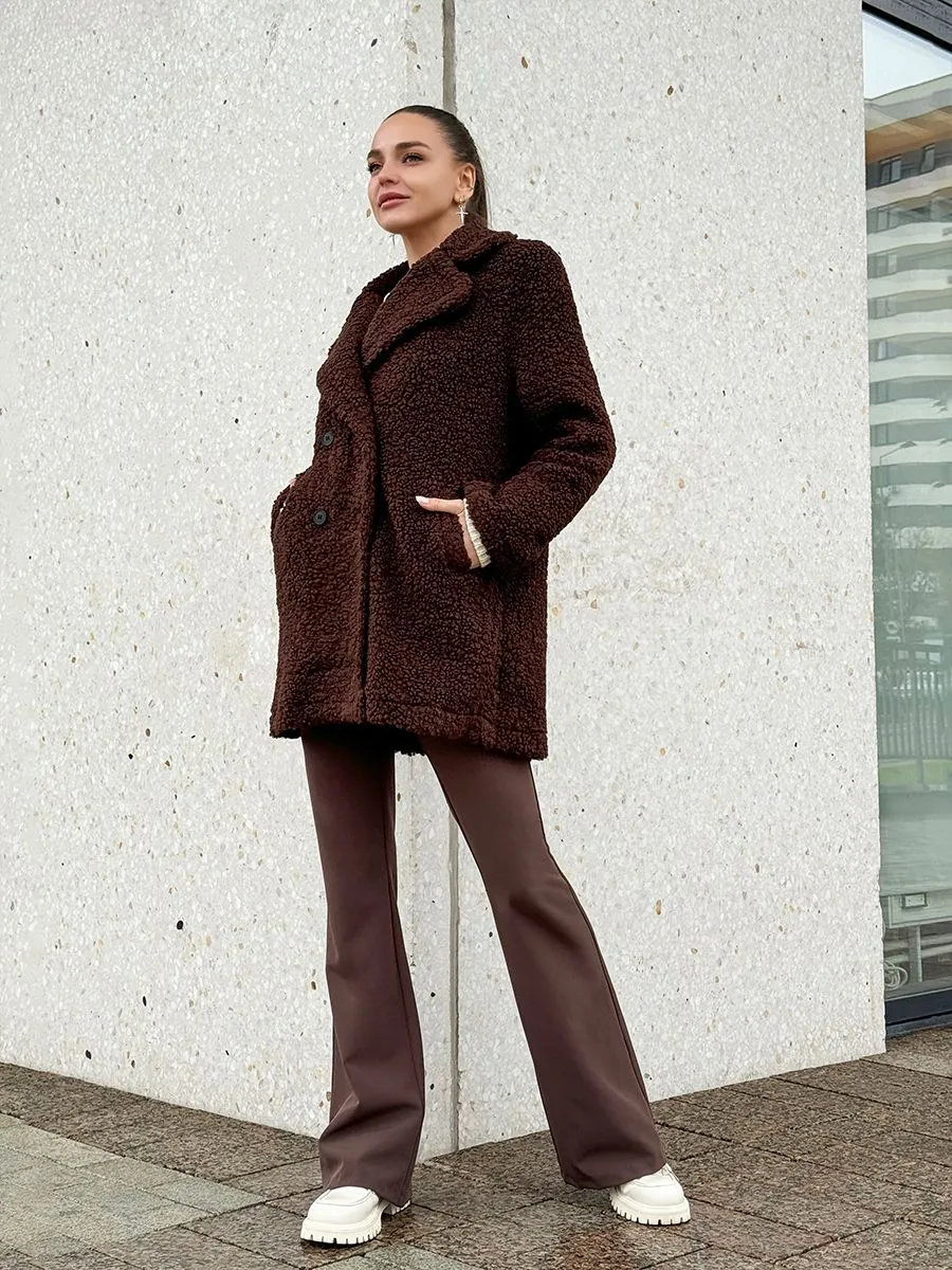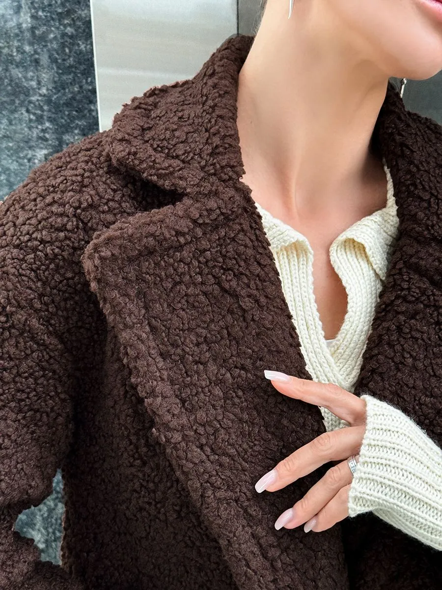 Полупальто женское тедди - идеальный вариант на теплую весну и прохладное лето. Легкое пальто имеет отложной воротник и длину выше колена. Двубортное застегивание на пуговицы добавит элегантности и практичности. Модель трапеция подойдет для повседневной носки и делового стиля. Весенняя шубка тедди подойдет подросткам и молодым девушкам. Ее а силуэт, стильный и милый дизайн обязательно оценят женщины, которые любят создавать образы как из пинтерест. Пушистое полупальто чебурашка мягкое и уютное - тренд 2025 года. Модель имеет свободный оверсайз крой, который не сковывает движений. Идеально подойдет беременным и скроет животик. Плюшевая куртка выполнена в шоколадном оттенке. Легкая шубка барашек подходит под модный стиль y2k (у2к). Меховое полупальто пиджак подойдет на теплое время демисезона, с ним можно создавать многослойные образы и сочетать с большим количеством нарядов засчет его универсального цвета. Трендовая модель подойдет для невысоких девушек.