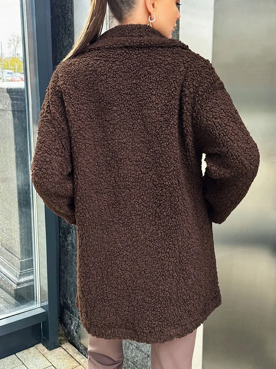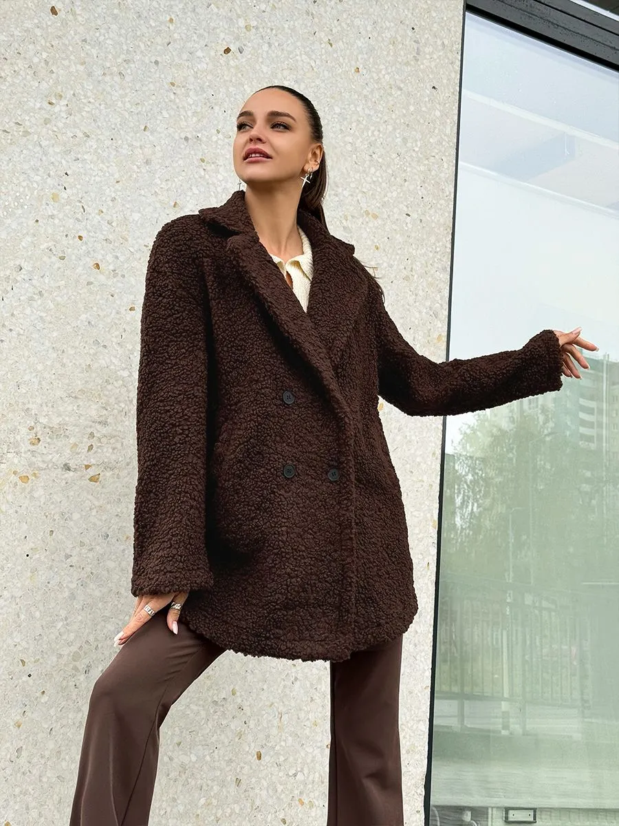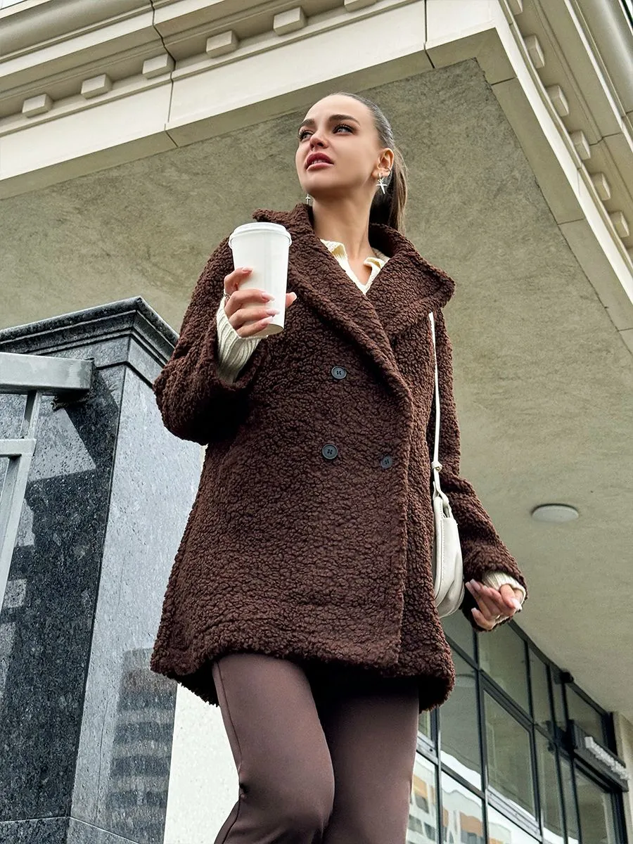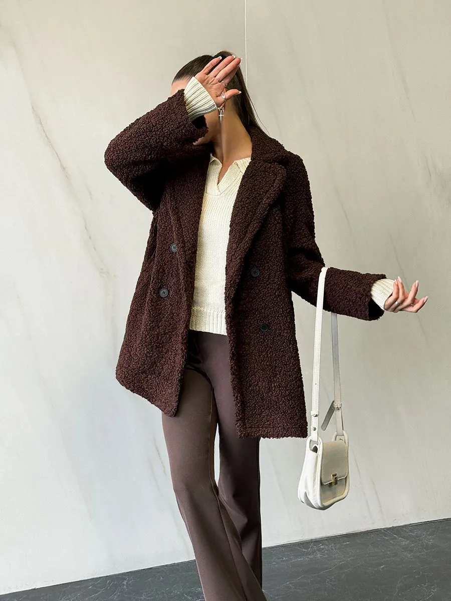 Полупальто женское тедди - идеальный вариант на теплую весну и прохладное лето. Легкое пальто имеет отложной воротник и длину выше колена. Двубортное застегивание на пуговицы добавит элегантности и практичности. Модель трапеция подойдет для повседневной носки и делового стиля. Весенняя шубка тедди подойдет подросткам и молодым девушкам. Ее а силуэт, стильный и милый дизайн обязательно оценят женщины, которые любят создавать образы как из пинтерест. Пушистое полупальто чебурашка мягкое и уютное - тренд 2025 года. Модель имеет свободный оверсайз крой, который не сковывает движений. Идеально подойдет беременным и скроет животик. Плюшевая куртка выполнена в шоколадном оттенке. Легкая шубка барашек подходит под модный стиль y2k (у2к). Меховое полупальто пиджак подойдет на теплое время демисезона, с ним можно создавать многослойные образы и сочетать с большим количеством нарядов засчет его универсального цвета. Трендовая модель подойдет для невысоких девушек.