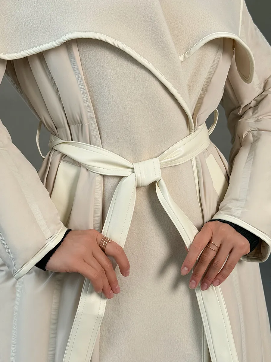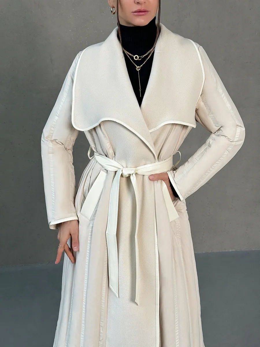 Классический плащ подойдет на осень и весну 2025. За счет пояса модель имеет приталенный крой, который подчеркивает фигуру и делает образ более изящным и нежным. В то же время, вариант выполнен в строгом деловом стиле. Стеганная модель миди обеспечивает максимальную теплоизоляцию и комфорт. Комбинированный плащ халат имеет утеплитель из натурального пуха. Он теплый и защитит от холода. Декоративным элементом является английский воротник, который добавит образу элегантности. Утепленный осенне-весенний вариант обеспечивает комфорт на протяжении всего дня. Куртка выполнена в светлом оттенке. Стильный дизайн и модный цвет сделают образ молодежным и незабываемым.