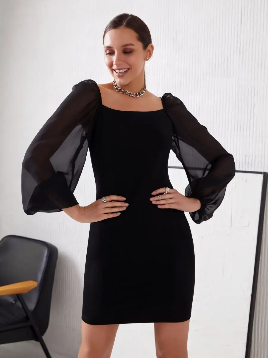 Это элегантное женское платье, которые подходит для особых торжественных мероприятий, включая корпоративы и свадьбы. Шифоновое и трикотажное платье доступно в различных размерах (до 50), позволяя вам найти вечернее платье с прозрачными широкими рукавами, соответствующее вашему стилю и фигуре. Нарядная модель подойдет на день рождения и как новогоднее.Классическое коктейльное платье выполнено из легкой ткани и имеет приталенный силуэт с длиной чуть выше колена, отвечая требованиям делового стиля для работы. Стильная базовая одежда позволяет носить платье как осеннее платье для фотосессии. Короткое однотонное платье со спущенными плечами не сковывает движений, поэтому подойдет для беременных и полных девушек. Для создания праздничного образа мы предлагаем облегающее мини платье с открытыми плечами, которое подчеркивает фигуру и делают ее более стройной. Рукава модели можно как опустить, так и поднять. Трикотажная модель с квадратным вырезом каре и объемными рукавами не просвечивает - ее можно надеть надеть в ресторан или театр, на торжество. Модель подойдет на новый год и новогодний корпоратив 2025.