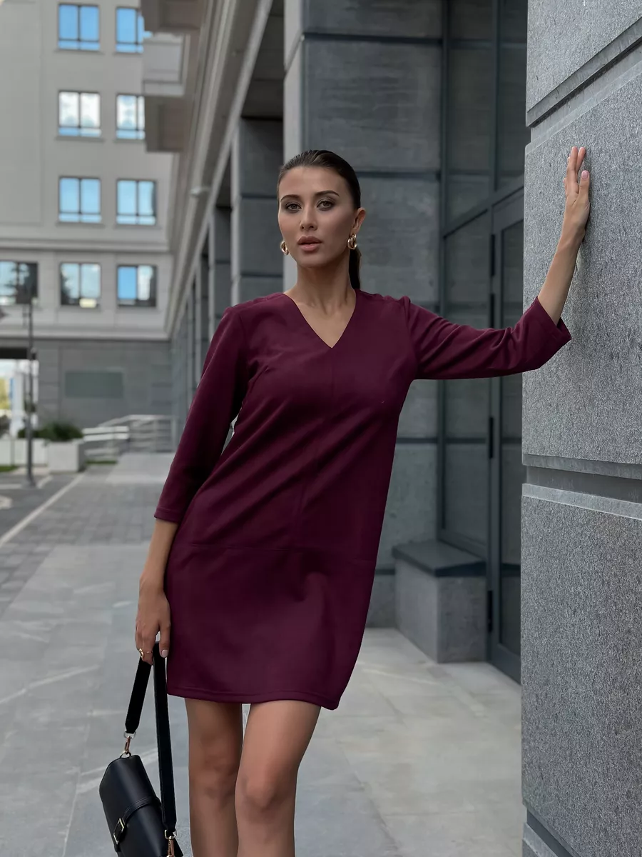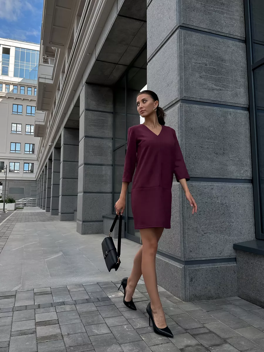 Эта модель входит у модниц в топ теплых платьев на осенний день. Будучи базовым демисезонное платье не выглядит скучно - за счёт интересного выреза с V-образной прорезью. Его можно надеть в офис на работу или учёбу. В сочетании с туфлями оно выглядит как вечернее или праздничное на выпускной. Силуэт - с акцентом на ноги, поэтому теплое платье подойдёт для любой фигуры, даже для беременных. Это нарядное платье короткое, с рукавом 3/4, что позволяет носить его в любое время года, в том числе и на холодную осень. Модель подойдет на день рождения и юбилей. Модель подойдет как школьный аутфит или в офис. Платье прямого кроя подойдет для девушек и женщин больших размеров и для беременных.