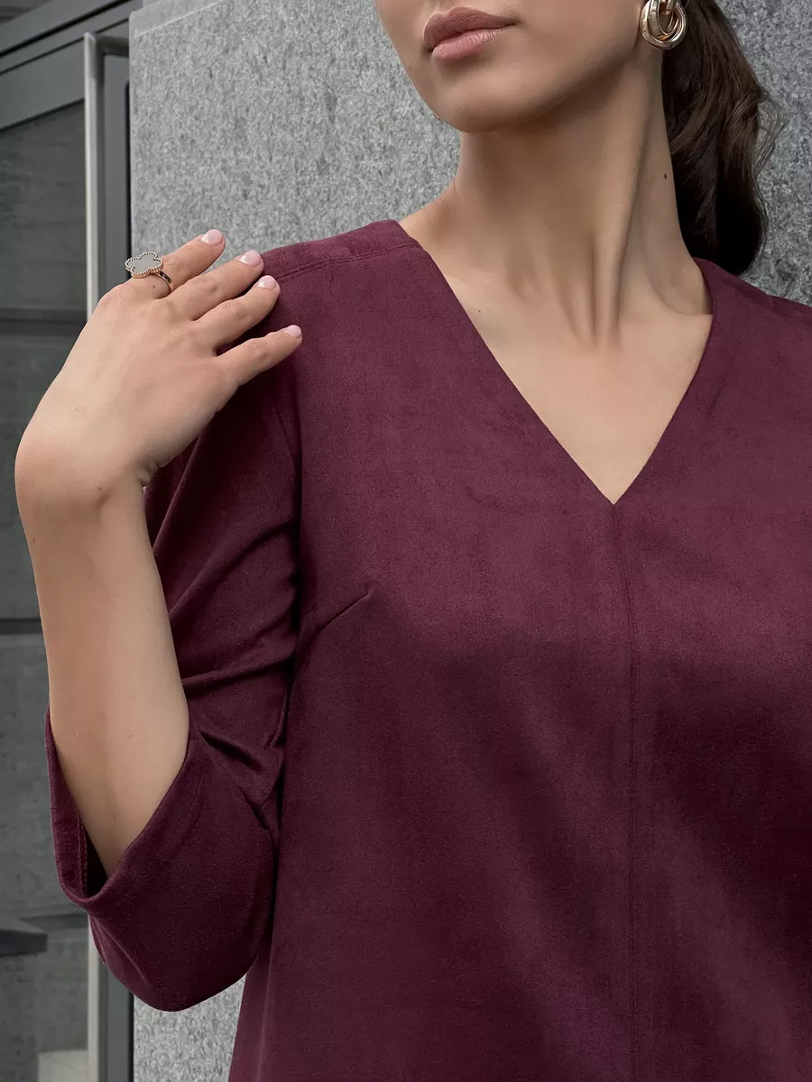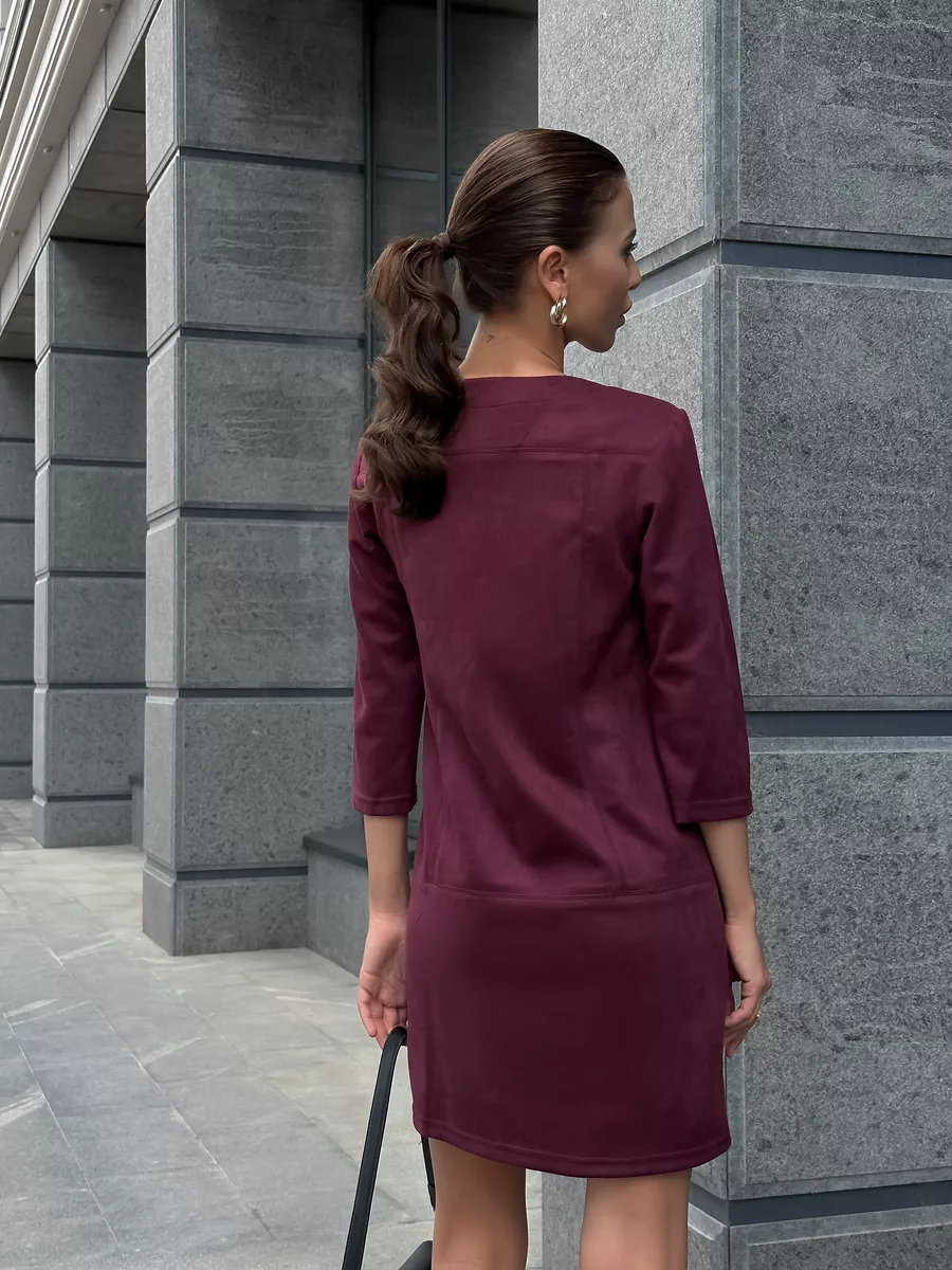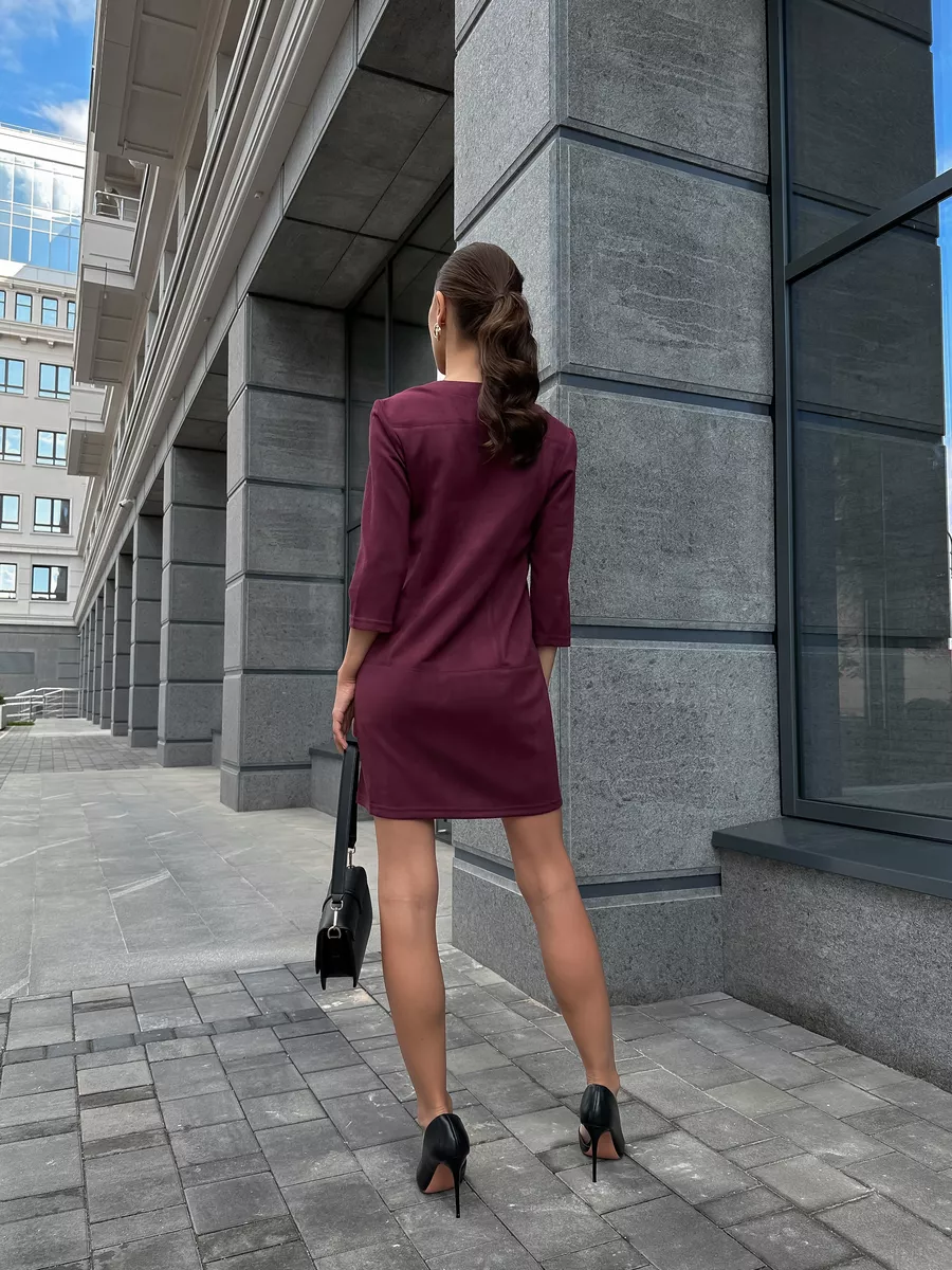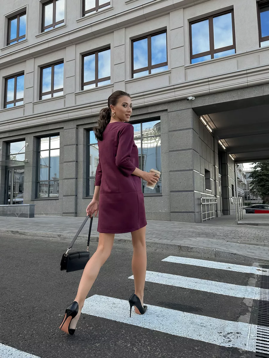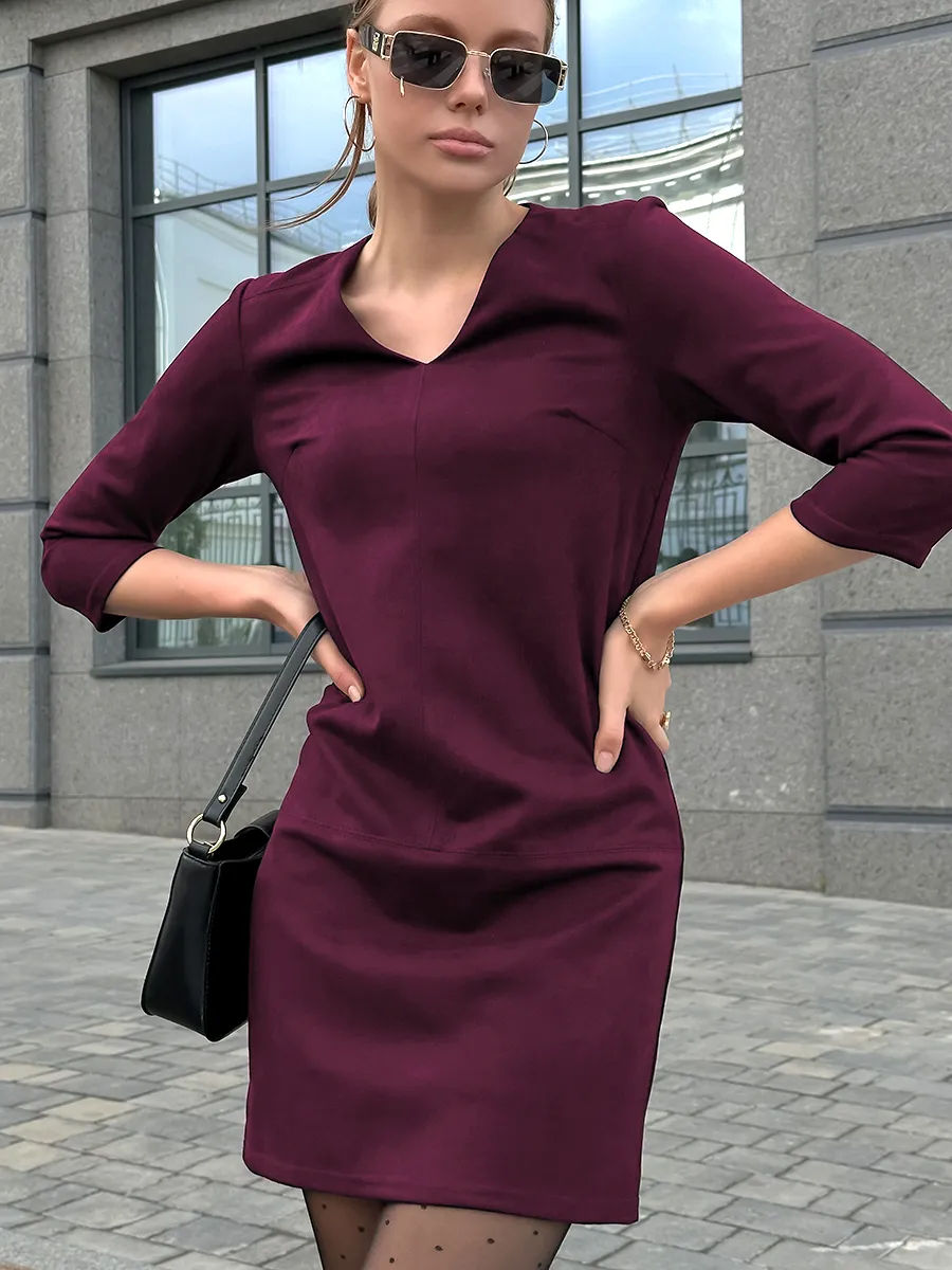 Эта модель входит у модниц в топ теплых платьев на осенний день. Будучи базовым демисезонное платье не выглядит скучно - за счёт интересного выреза с V-образной прорезью. Его можно надеть в офис на работу или учёбу. В сочетании с туфлями оно выглядит как вечернее или праздничное на выпускной. Силуэт - с акцентом на ноги, поэтому теплое платье подойдёт для любой фигуры, даже для беременных. Это нарядное платье короткое, с рукавом 3/4, что позволяет носить его в любое время года, в том числе и на холодную осень. Модель подойдет на день рождения и юбилей. Модель подойдет как школьный аутфит или в офис. Платье прямого кроя подойдет для девушек и женщин больших размеров и для беременных.