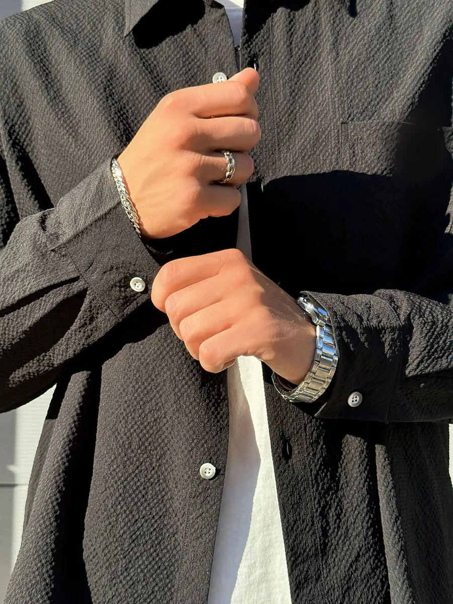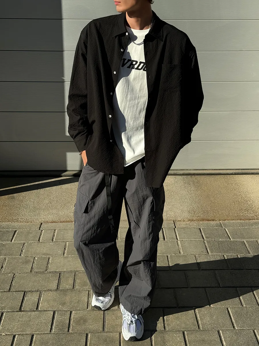 Рубашка мужская оверсайз подойдет для создания стильного и комфортного образа. Свободный крой обеспечит комфорт и свободу движений. Легкая модная рубашка гофре с воротником подойдет для подростка, парня и мужчины можно надеть ее в школу и даже в офис. Ее можно носить как самостоятельную вещь, так и как второй слой на одежду. Рубашка в духе y2k (у2к) дополнит расслабленный и молодежный аутфит. Модель oversize с манжетами можно сочетать и со стилем old money(олд мани), создавая более аристократичные образы. Для удобства модель имеет накладной карман, чтобы положить необходимые вещи. Однотонная трендовая стильная рубаха - это универсальный вариант с акцентом на корейскую моду. Удлиненная рубашка с длинным рукавом подойдет на летний и осенний сезоны 2024 и идеально на новый год.