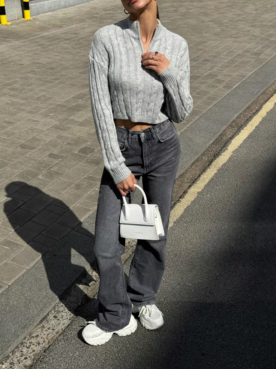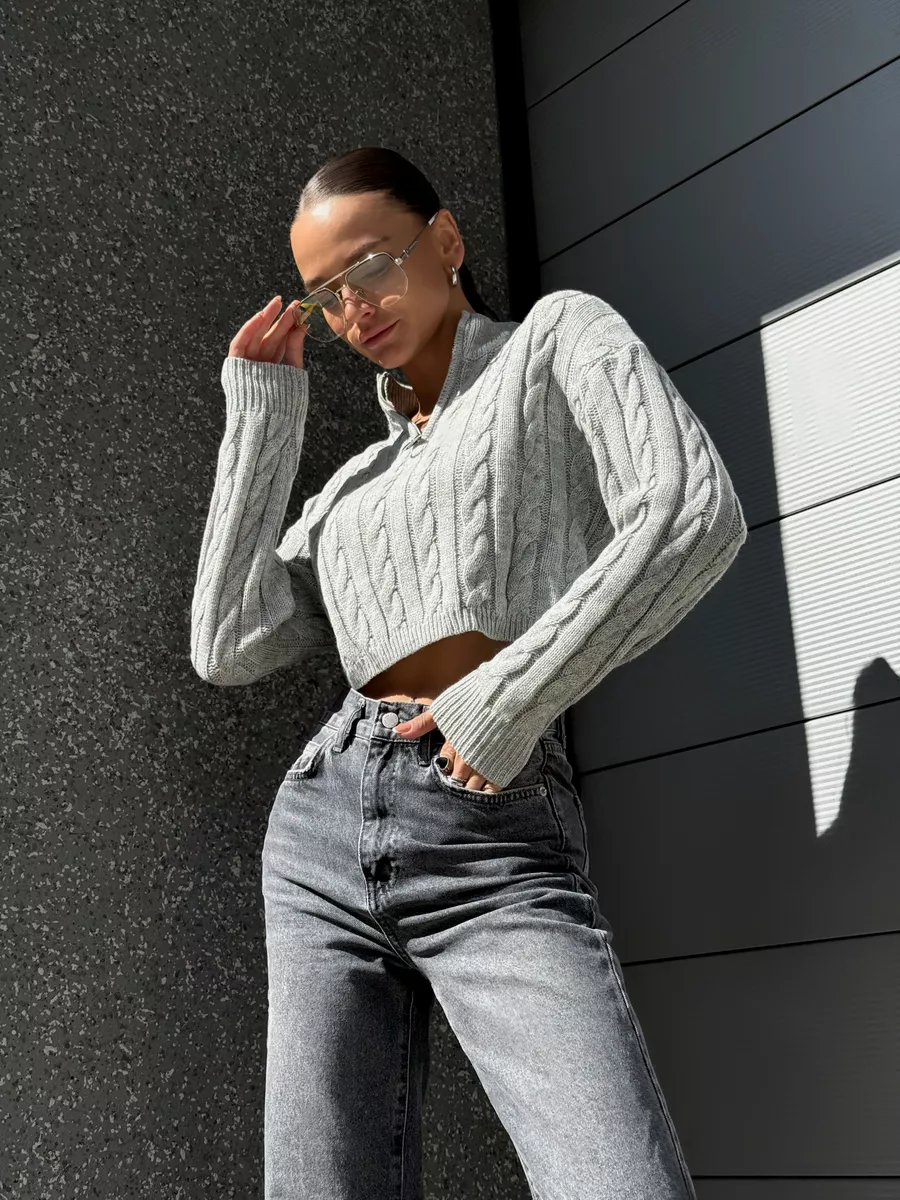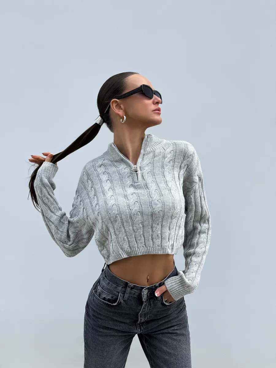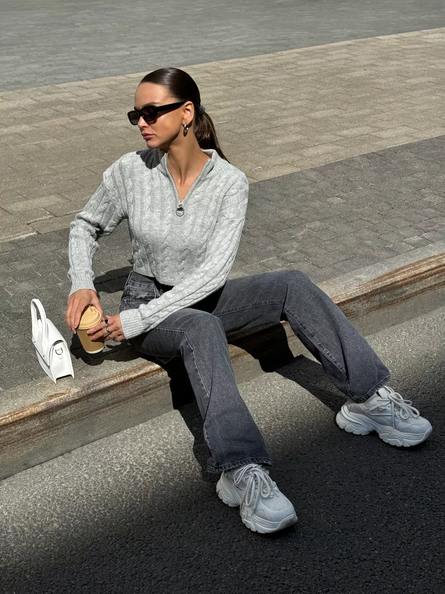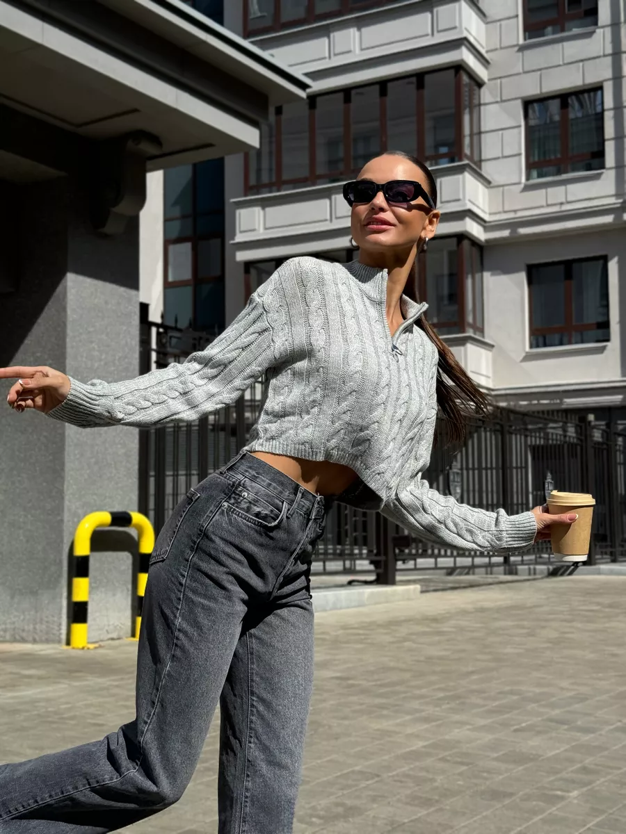 Свитер женский на молнии - это символ уюта, комфорта и стиля. Приталенный крой джемпера подчеркивает женственность и добавляет образу нежности. Однотонный пуловер топ подойдет для прохладных осенних дней. Вязаный свитер фактурной вязки косичка мягкий и милый, поэтому сможет стать частью теплых образов на осень. Кроп кофта вязаная подойдет для девушек и женщин постарше. А также как школьный для подростка. Модель с косами имеет воротник, который можно регулировать с помощью молнии. Укороченный свитер со спущенными плечами обеспечит комфорт на весь период и создаст расслабленный образ. Короткий свитер с замком подходит для создания уютного и стильного образа. Теплый свитер с горлом - классика, которая никогда не выходит из моды.
