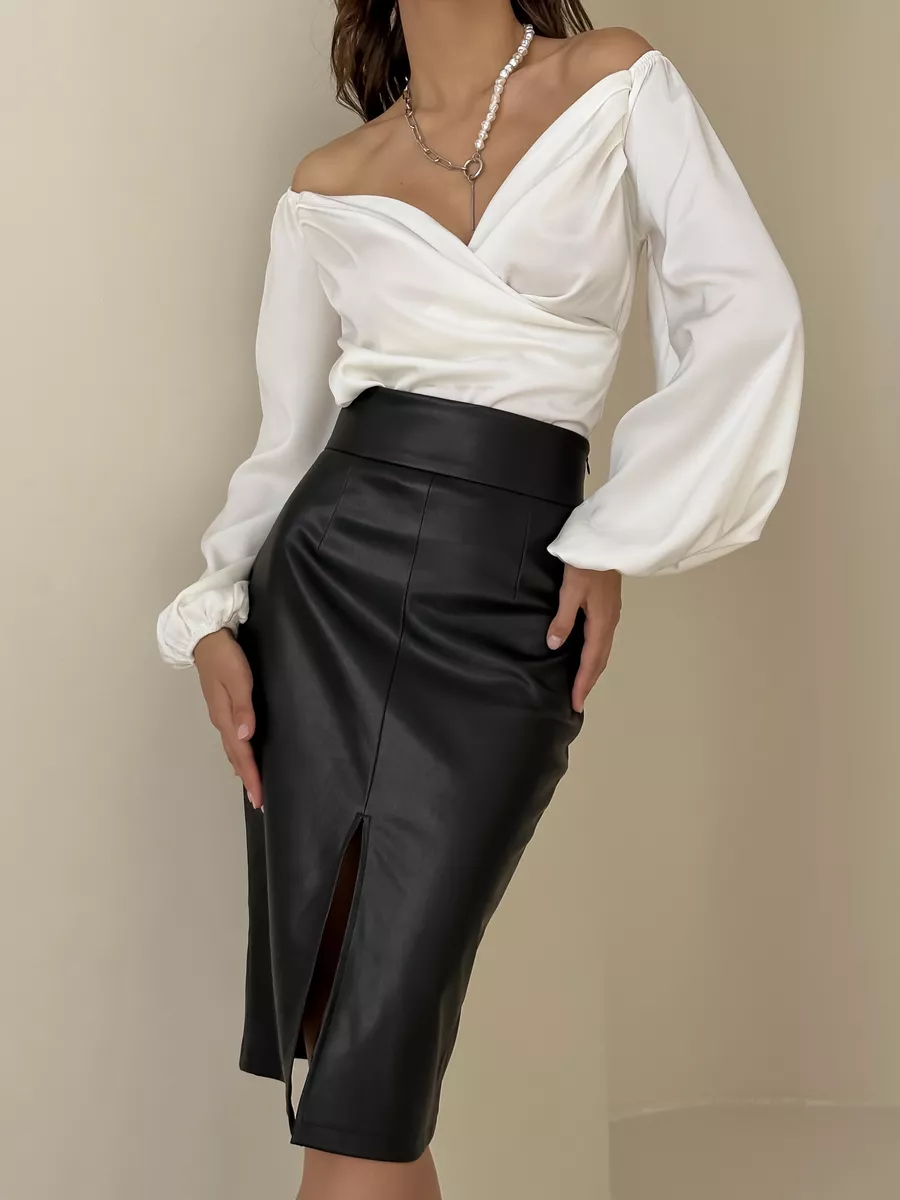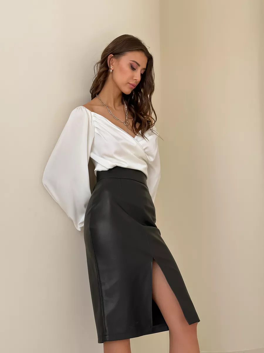 Женственная, стильная и утонченная – эта модель создана для того, чтобы подчеркнуть вашу неповторимость. Демисезонная юбка миди из искусственной кожи – это выбор современной женщины, ценящей комфорт и стиль. Модель подойдет как вечерний наряд на новый год (нг) и новогодний корпоратив 2025. Юбка карандаш подчеркивает фигуру, создавая элегантный силуэт и утягивающий эффект. Юбка черная с высокой талией подарит вам уют в осенние дни, не утрачивая элегантности, а разрез спереди добавляет нотку соблазнительности. Юбка вечерняя из экокожи – настоящий хит, подходящий для вечеринок, на корпоратив и день рождения. Обтягивающая черная юбка французской длины миди - классика, которая всегда в моде. Зауженный силуэт - это воплощение элегантности и стиля. Она идеально впишется в ваш образ офисной леди. С юбкой с вырезом вы не просто следуете за модой – вы создаете свой собственный тренд. Будьте уникальными, вдохновляющими и неотразимыми!