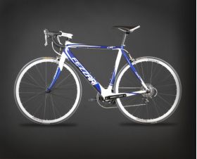 Шоссейный велосипед Fore CR1 , предназначенный для езды по асфальтированной дороге, обладает высокой скоростью, имеет легкую раму и тонкие плотно накачанные колеса.